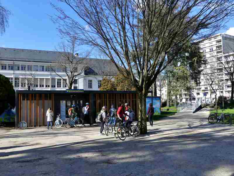 À La Vélostation, provisoirement installé dans le parc du Verney, il est aussi possible de laisser sa bicyclette à la journée moyennant 1€ par jour.